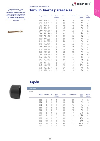 diámetro menor de 250 mm, , VÁLVULAS Y ACCESORIOS DE PVC